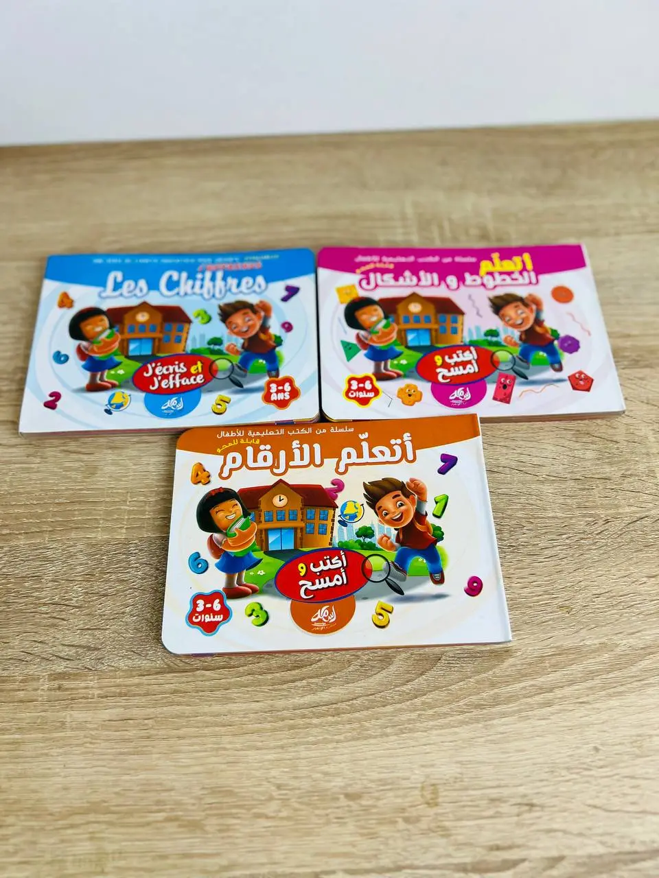 اجعل التعلم ممتعًا لأطفالك مع هذه السلسلة الرائعة من الكتب التفاعلية التي تجمع بين الكتابة، المسح، والتكرار لتثبيت المفاهيم بطريقة مسلية! 😍