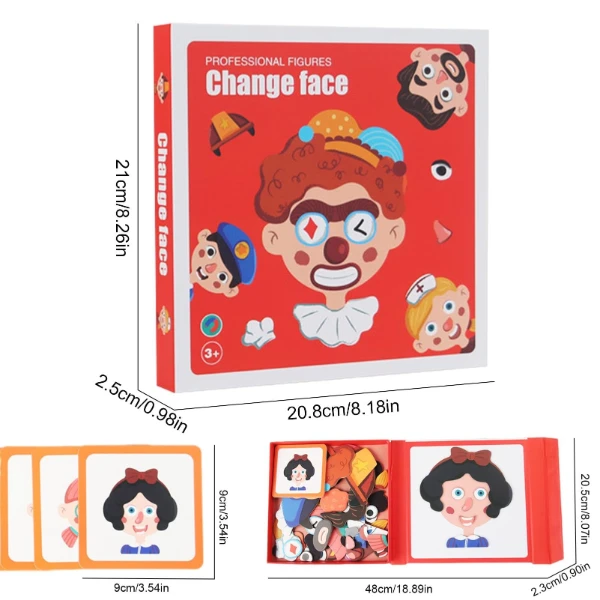 افتح باب الإبداع لطفلك مع لعبة “Change Face” المميزة! هذه اللعبة الرائعة تمنح الأطفال فرصة لتكوين عشرات الأشكال والتعبيرات المضحكة والمبتكرة من خلال قطع مغناطيسية ملونة وسهلة الاستخدام.