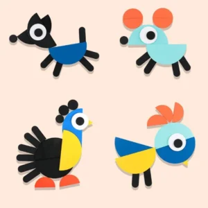يبدأ الطفل برؤية الأشكال البسيطة، ثم يحولها إلى صور حيوانات ممتعة — رحلة من الخيال إلى الواقع!