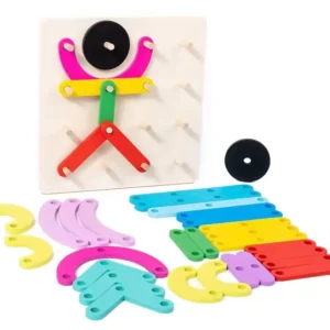 لعبة مميزة تحتوي على قطع خشبية ملونة وآمنة، مصممة لتنمية خيال الأطفال وتعزيز مهاراتهم بطريقة ممتعة وتفاعلية.